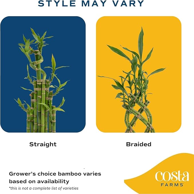 Costa Farms Lucky Bamboo Plant, Easy to Grow Live Houseplant in Indoor Bamboo Pot, Potting Mix, Grower's Choice, Birthday Gift, Home, Office, Plant Shelf Zen Room Decor, 12-Inches Tall