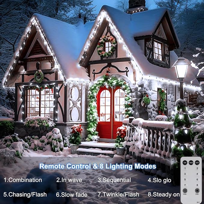 - Multi-function Remote Control: ①: 8 Lighting modes ②: Timer (6 hours on, 18 hours off) ③: Brightness adjustments. (Please point the remote control at the plug to operate the lights)