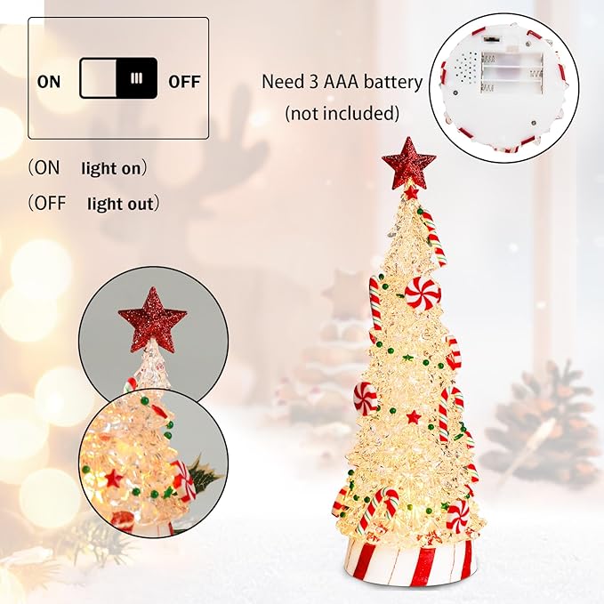 Small Christmas Tree Candy Tree 13 Inch Tabletop Christmas Tree Vintage Christmas Decoration Battery Operated Mini Transparent Christmas Acrylic Tree with LED Lights