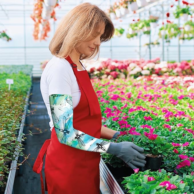 Buwuta Garden Sleeves for Women Dragonfly Sun Protection Sleeves Anti-Scratch Arm Cooling Sleeves for Farmers Sports