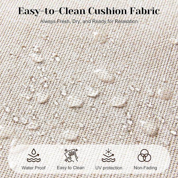 - Unparalleled Comfort: The 4-inch thick back and seat cushions are filled with high-density foam. It offers a cozy and resilient sitting experience for relaxation. The polyester cushion cover is water-repellent and doesn't deform easily.